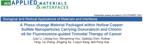 該研究于2018年12月以題為A Phase-change Material Packaged within Hollow Copper Sulfide Nanoparticles Carrying Doxorubicin and Chlorin e6 for Fluorescence-guided Trimodal Therapy of Cancer發(fā)表在《ACS Applied Materials & Interfaces》上。