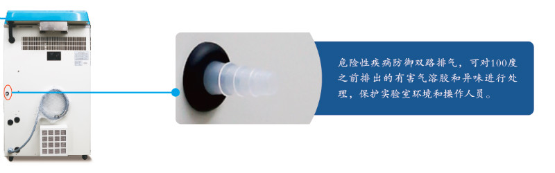 危險性疾病防御雙路排氣,可對100度之前排出的有害氣溶膠和異味進行處理,保護實驗室環(huán)境和操作人員。